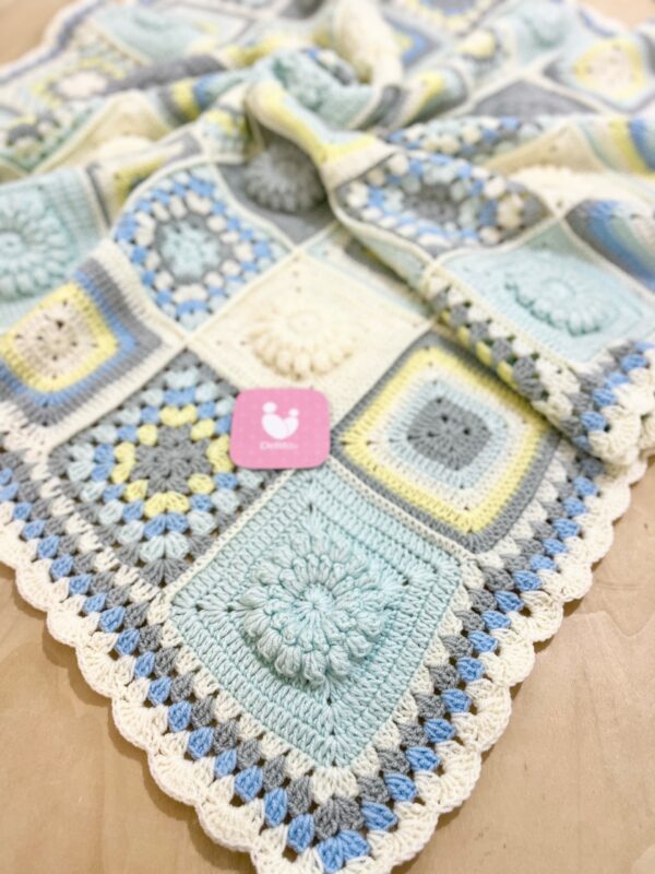 (کاموای مصرفی برای گل های این مدل پتو ترک می باشد)