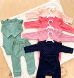 سایز 3-6 ماه، قدآستین 20، عرض سینه 21، قدبادی 37، قدشلوار 39، قدفاق 18.5، دورکمر (بدون کشسانی) 39