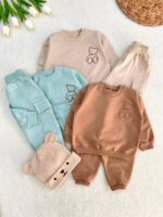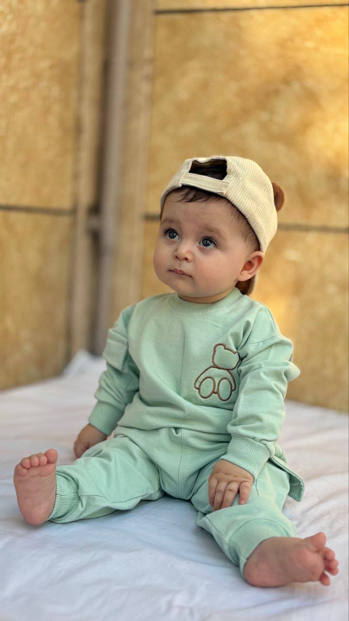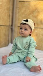 سایز ۶-۱۲ ماه: عرض سینه ۳۱، قد استین ۲۳، قد بلوز ۳۱، قد شلوار ۴۳